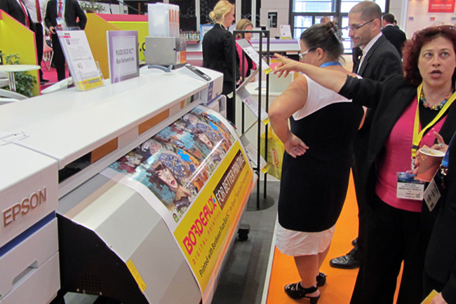 Los espectadores mostraron gran interés en las tintas de sublimación a base de agua de Bordeaux y en una amplia gama de tintas de rápido curado UV y UV LED y promotores de adherencia, permitiendo más flexibilidad en el uso de sustratos de las series Efi® VUTEk™, Océ® Arizona™, HP® Scitex™, Agfa® y otras impresoras. Bordeaux también ofrece soluciones rentables tales como el sistema de entrega de tintas de Smart Cartridge y el sistema de codificación del chip, ambos desarrollados por su socio InkOnDemand.com.